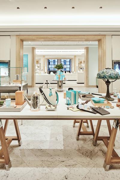 A decoração incorpora detalhes industriais, que reforçam o trabalho manual e artesanal da marca, além das heranças da Tiffany. Toques diferenciados convivem harmoniosamente ao lado dos acabamentos únicos, como mármore e pedra amazonita, refletindo como a nova coleção Home & Acessórios se encaixa no luxuoso cotidiano da joalheria.