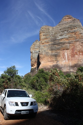 A reportagem estava a bordo de um carro 4×2, mas a recomendação é o modelo 4×4, em função do solo em aclives e declives, e também contamos com a colaboração do guia e biólogo Valtércio Torres, que nos levou tanto a paisagens memoráveis, quanto ajudou na identificação da fauna e flora locais, caso do mocó, roedor existente somente na caatinga, raposas, tatus e a temida onça. Em relação à flora, os cactos naturalmente se tornam o maior atrativo, com destaque para o chapéu de frade, que destoa na vista por seu formato arredondado e cor avermelhada, ou a mulatinha, uma erva que alivia coceiras. Passada a ambientação com os animais e a vegetação, embora temer a presença de uma onça seja uma obcessão, já que as pegadas do bicho são facilmente observadas, as descobertas se concentram nas rochas. Isto porque à base de tinta vermelha, pinturas das mais variadas formas surgem para contar o passado. Aqui, os guias ajudam na interpretação de uma ou outra cena, enquanto às demais cabe a sua imaginação buscar uma explicação. As figuras mais recorrentes representam o sexo, a religião, a caça e o nascimento, de forma, que ao longo da caminhada, elas mostram a evolução da maneira como esses homens se viam, já que ao traço são incluídos mais detalhes e mais cores, como o branco e o amarelo.