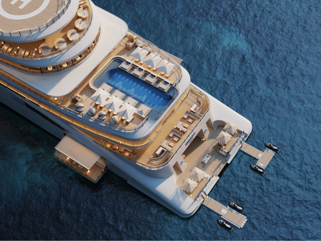 Atualmente em construção, o iate impressiona pelas proporções e pelo cuidado com cada detalhe. São 180 metros de comprimento, distribuídos em nove decks, concebidos para refletir os pilares da marca: espaço, tranquilidade e exclusividade. Com apenas 47 suítes – todas com terraço privativo e áreas generosas que variam de 68 a 354 metros quadrados – o Amangati acomoda no máximo 94 hóspedes, garantindo uma experiência intimista raramente encontrada em alto-mar.