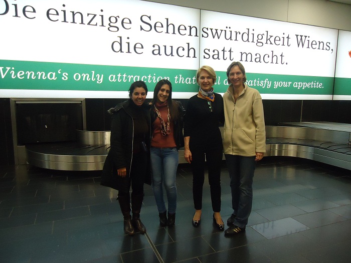 O turismo de Viena conta (no Brasil) com a assessoria da Berg Eventos e Negócios, que tem sede em Sorocaba, interior de São Paulo. Debora Creutzberg (última a direita), uma das sócias da empresa acompanhou o grupo de brasileiros, que contou além de Márcia Santos (primeira a esquerda) com a presença de Vera Campacci, da Maringá Turismo e Caroline Setton, da Tereza Perez Tour (centro da foto).