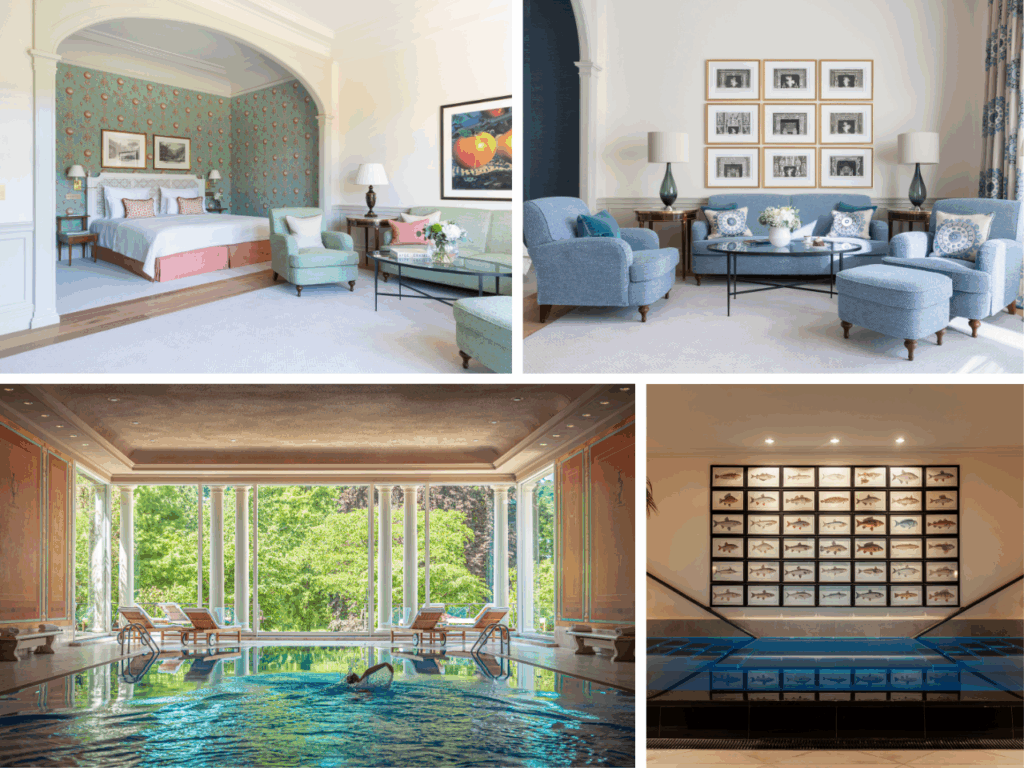 A renovação foi liderada pela Condessa Bergit Douglas, do estúdio MM Design, que imprimiu ao hotel uma estética refinada e única: tecidos Pierre Frey e De Gournay, móveis feitos sob medida e nada menos que 27 estilos diferentes de suítes, mesclando o glamour Beaux-Arts ao design inglês contemporâneo. Banheiros em mármore, metais artesanais e uma paleta sofisticada revelam uma abordagem em que o luxo se expressa pela personalidade, e não pelo excesso.