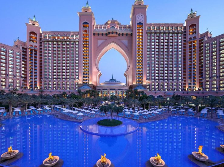 O hotel Atlantis, The Palm, em Dubai, teve um início de ano novo com uma torre de champanhe que quebrou o recorde mundial do Guinness,..