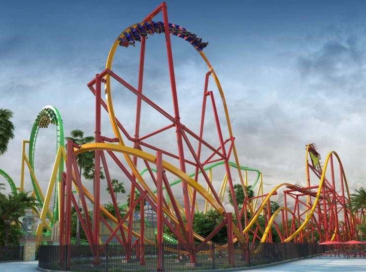 Os caçadores de emoção na Califórnia logo poderão montar a montanha-russa de trilho único mais alta e longa do mundo, quando o Six Flags Magic..