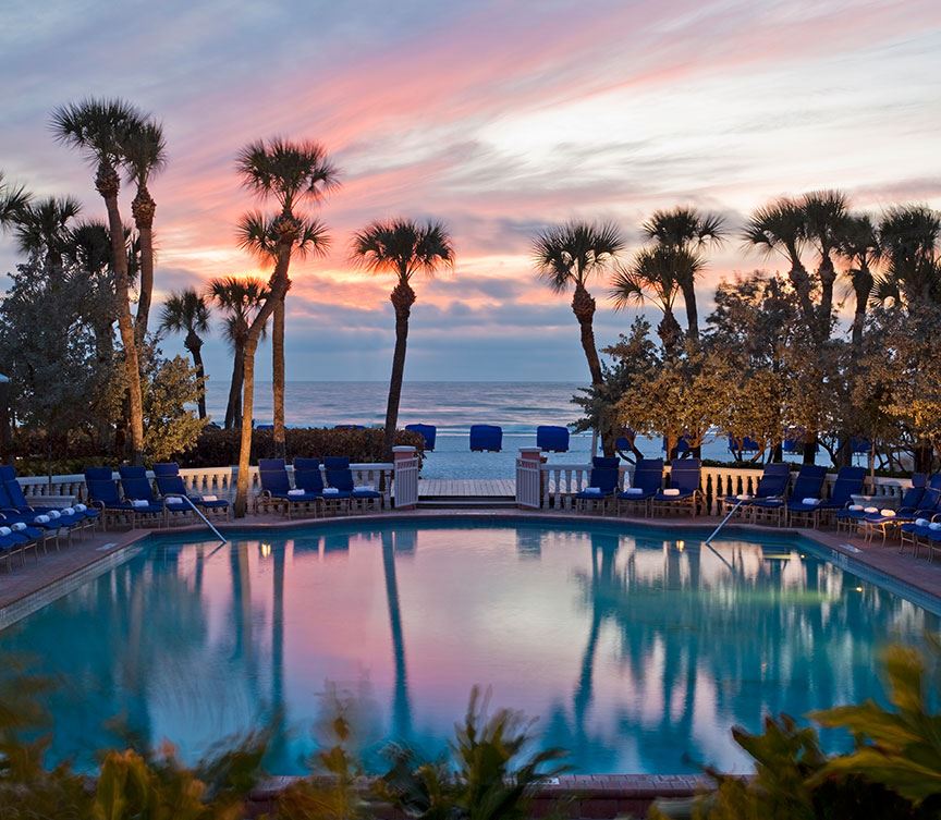 Certamente um dos hotéis mais lindos do mundo, o Don Cesar é o endereço perfeito para as férias em família. Construído em meio ao cenário ensolarado de St. Pete, hospedar-se aqui é ter o privilégio da vista panorâmica do Golfo, banhos em piscinas de borda infinita e a beleza suntuosa de um prédio histórico, desenhado em 1928, com uma área privativa de onze quilômetros de praias de areias branquinhas e mar azul cristal.
