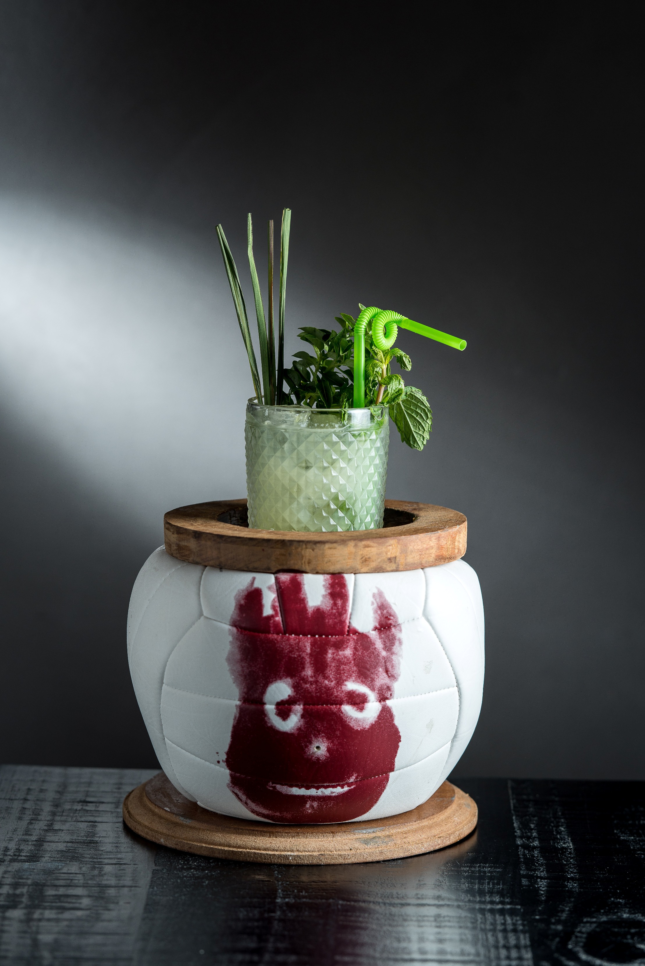 Para quem é fã de cinema, a bola da vez é o Drink “Wilson visita Olívio”, servido em uma bola de vôlei como a que fez sucesso com Tom Hanks no filme “Náufrago”. A bebida leva Tanqueray Gin, água de coco, limão, uva verde, capim-santo e hortelã (R$ 30).