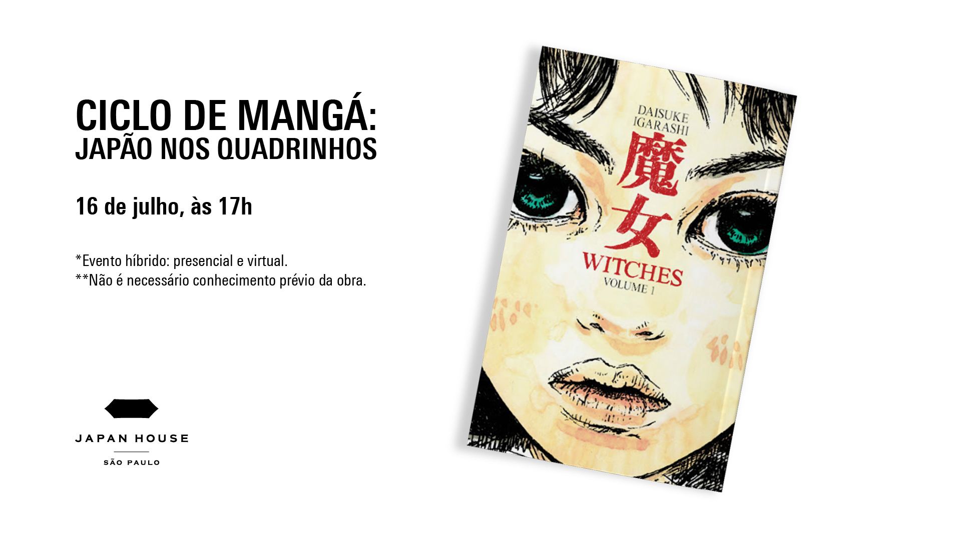 Durante o mês de julho, a Japan House São Paulo oferece uma programação gratuita e variada para aproveitar a época de férias tanto no ambiente virtual como em sua sede na Avenida Paulista. A instituição promove visitas mediadas à exposição Kumihimo – a arte do trançado japonês com seda, por Domyo, em cartaz até 28 de agosto, além de oficinas para toda a família. Para quem gosta de literatura, o Ciclo de Mangá traz a obra Witches, de Daisuke Igarashi; a autora Lúcia Hiratsuka apresenta seu livro infantil Chão de Peixes com uma contação de história e oficina de pintura sumiê, e o Clube de Leitura aborda a obra Abandonar um Gato, do aclamado autor japonês Haruki Murakami.