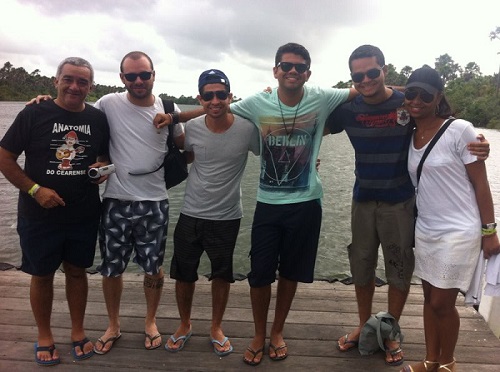 O piloto Bacaninha (à esq.), alguns dos jornalistas e eu, antes do passeio pelo rio Preguiça