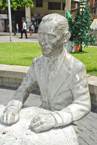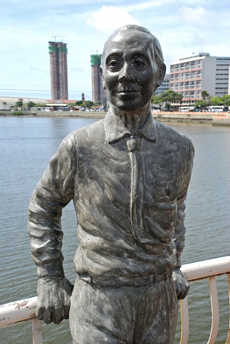 Falecido com pouco mais de 30 anos, Carlos Pena Filho, jornalista, advogado e poeta, teve tempo para ser chamado por Gilberto Freyre de pintor de palavras. A escultura encontra-se em frente a ex-sede do Diário do Pernambuco, para o qual Pena colaborou.
