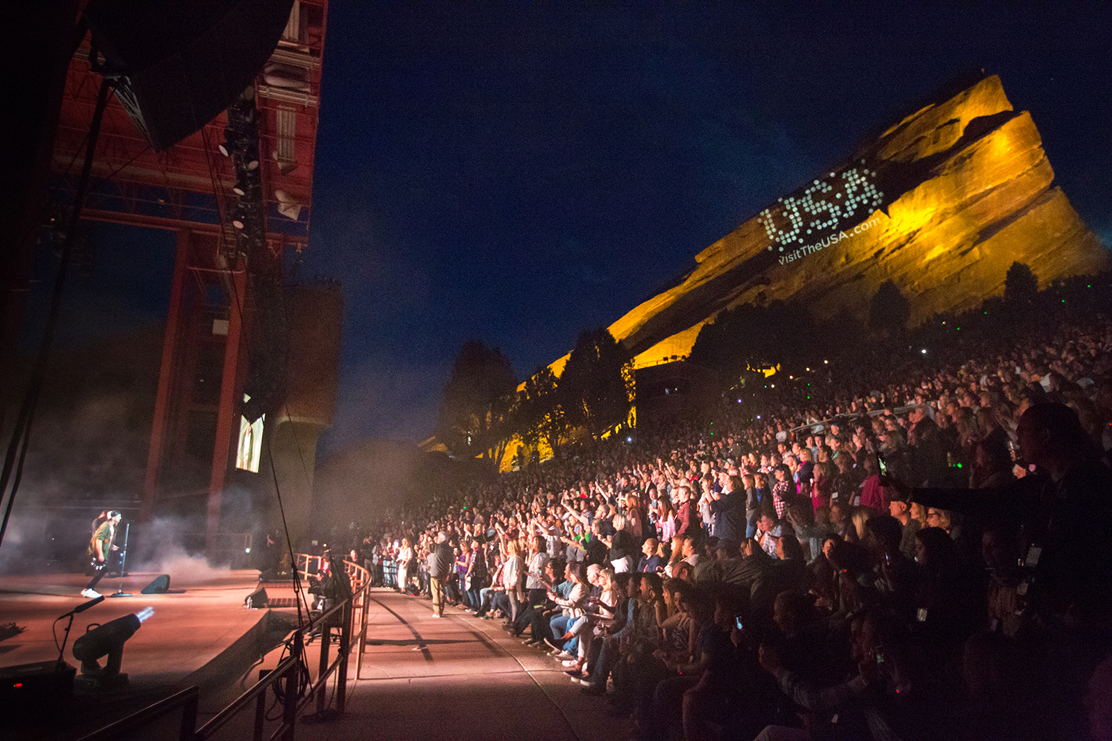 A paisagem é surpreendente durante todo o trajeto, pela estrada avistamos montanhas e um céu azul infinito. Mas é quando nos aproximamos das montanhas que paramos para refletir sobre o quão mágica e poderosa é a natureza, a sensação é de que somos realmente seres minúsculos e dependentes. Há relatos de pessoas que se emocionaram ao se depararem com as gigantes vermelhas, alguns enchem os olhos de lágrimas ou simplesmente ficam arrepiados, outros se sentem ofegantes seja pela altitude ou pela emoção mesmo. Independente da sensação, estar entre as as famosas Red Rocks Mountains é uma experiência única. Agora imagine viver essa experiência, ao som de uma das bandas mais renomadas do estado do Colorado e dos Estados Unidos. Isso aconteceu!