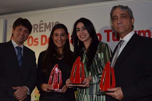 Bruno Herbert, do CV&B; Rafaela Marques, do Beto Carrero ao centro, com Luciana Fernandes, da Empetur e agraciado da noite