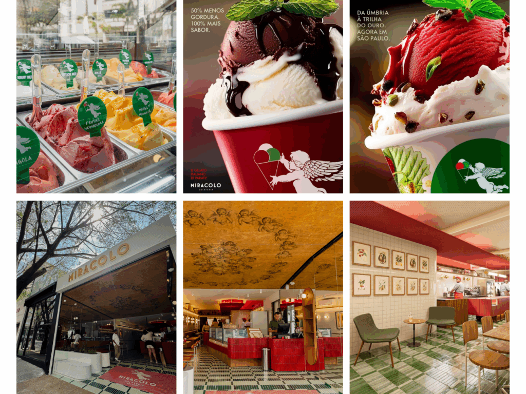 A ambientação ganha ainda mais charme com uma rara coleção de litogravuras com mais de 150 anos, curada por Luciano Lima. Muitas retratam frutas tropicais como cacau, caju, graviola e jabuticaba — ingredientes que também inspiram os sabores da linha Miracolo Arte, com gelatos veganos, sem lactose, açúcar ou glúten. Algumas das obras estarão disponíveis para compra, com preços acessíveis, e poderão ser combinadas com o gelato em combos especiais que unem arte e gastronomia.