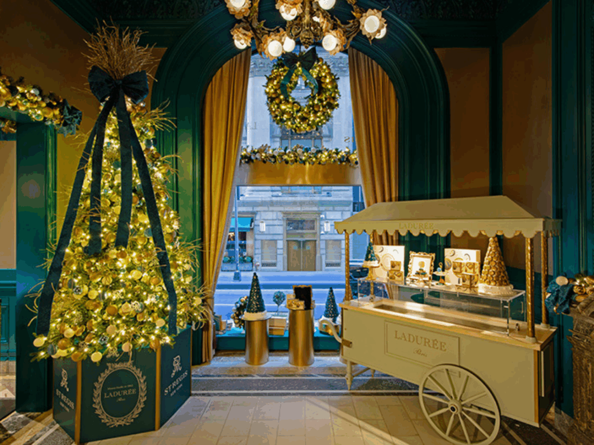 a lendária confeitaria Ladurée traz a elegância francesa às tradições natalinas do St. Regis.