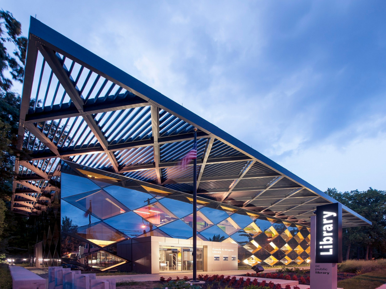 Saindo do centro e indo para o sudeste da cidade, o visitante encontra a Francis A. Gregory Library, um exemplo notável de design contemporâneo. Projetada pelo renomado arquiteto David Adjaye — o mesmo responsável pelo Museu Nacional de História e Cultura Afro-Americana — a biblioteca foi inaugurada em 2012 e impressiona por sua fachada em vidro espelhado, em forma de diamante, que reflete a paisagem verde ao redor. Além do visual moderno, o interior é acolhedor e funcional, com salas de leitura arejadas, programas educativos gratuitos e eventos comunitários. A proposta da biblioteca é clara: ser um espaço de encontro e inspiração para todos.